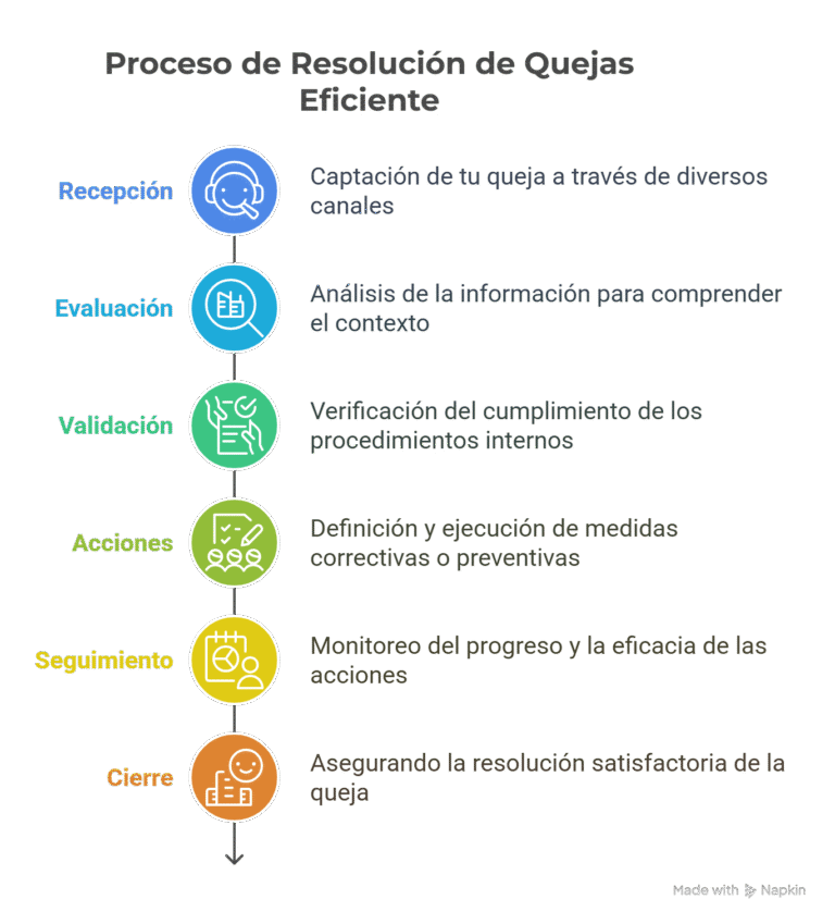 Trabajamos con un enfoque claro y ordenado para brindarte soluciones efectivas. Cada etapa está pensada para garantizar que tu voz sea escuchada y tu inconformidad atendida de manera justa y oportuna.